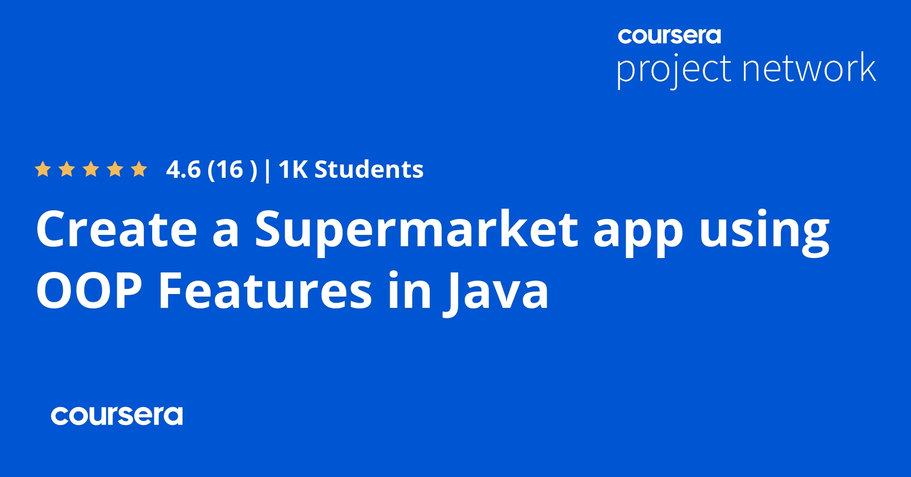 Complete this Guided Project in under 2 hours. In this 1-hour long project-based course, you will create a supermarket app using OOP Features in Java. You …