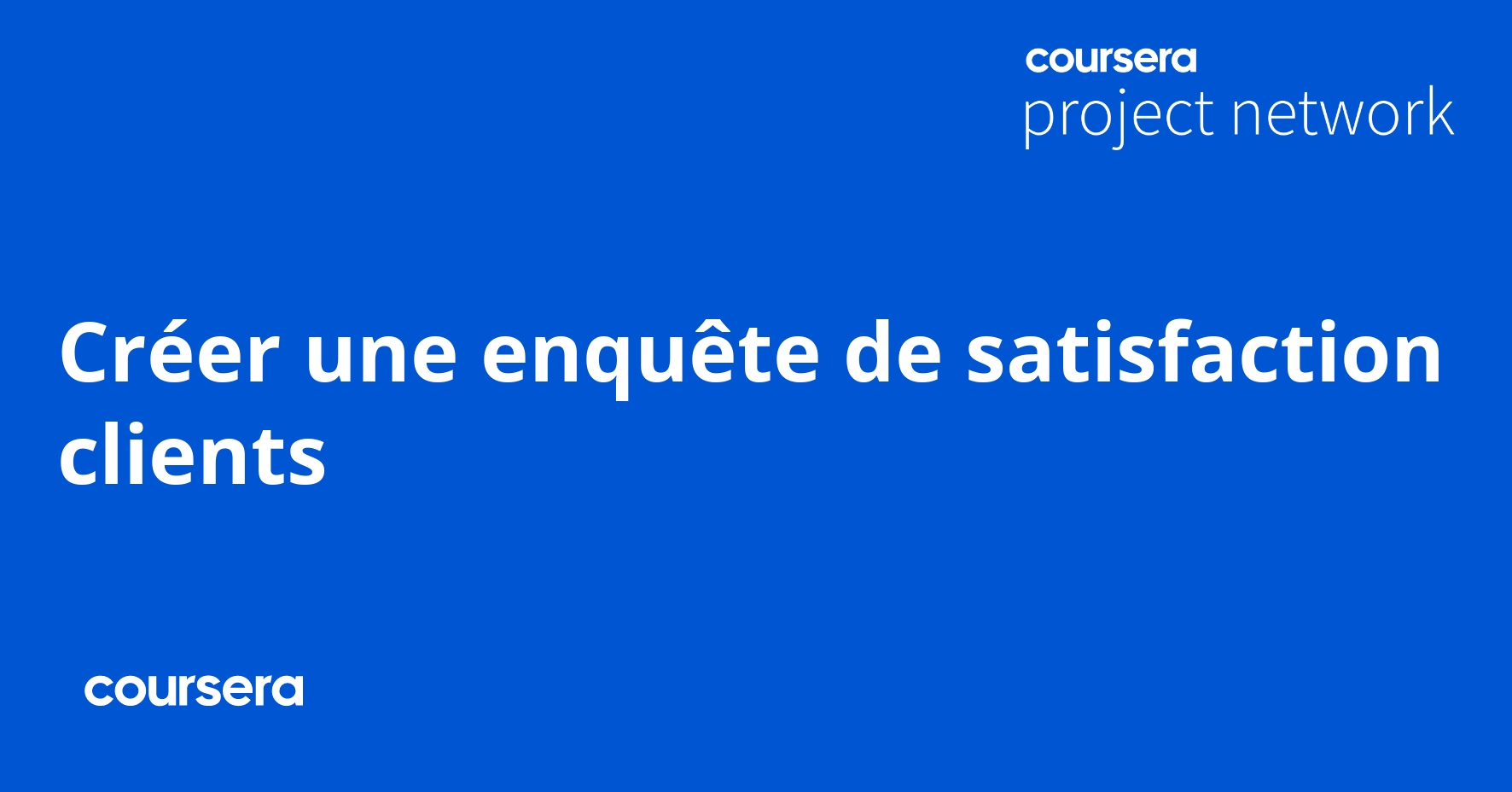 Complete this Guided Project in under 2 hours. À la fin de ce projet, vous aurez toutes les compétences de base pour créer une enquête de satisfaction …