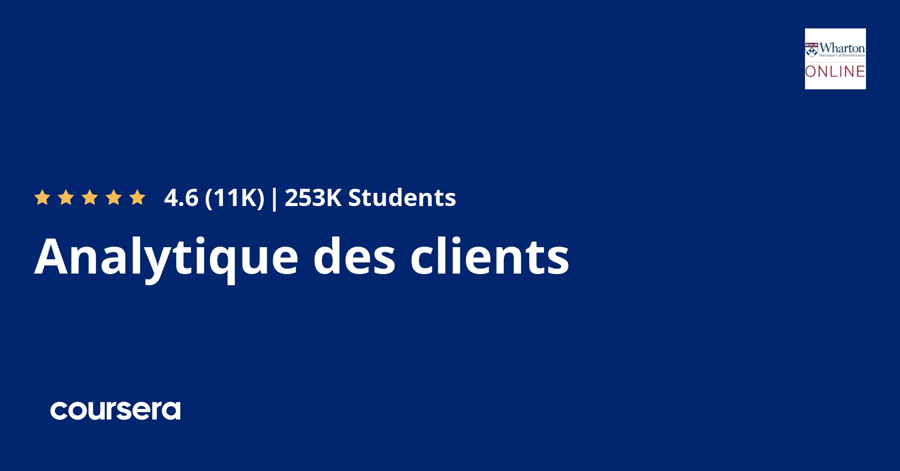 Data about our browsing and buying patterns are everywhere. From credit card transactions and online shopping carts, to customer loyalty programs and user-generated ratings/reviews, there is a staggering amount of data that can be used to describe our past buying behaviors, predict future ones, and prescribe new ways to influence future purchasing decisions. In this course, four of Wharton’s top marketing professors will provide an overview of key areas of customer analytics: descriptive analytics, predictive analytics, prescriptive analytics, and their application to real-world business practices including Amazon, Google, and Starbucks to name a few. This course provides an overview of the field of analytics so that you can make informed business decisions. It is an introduction to the theory of customer analytics, and is not intended to prepare learners to perform customer analytics.