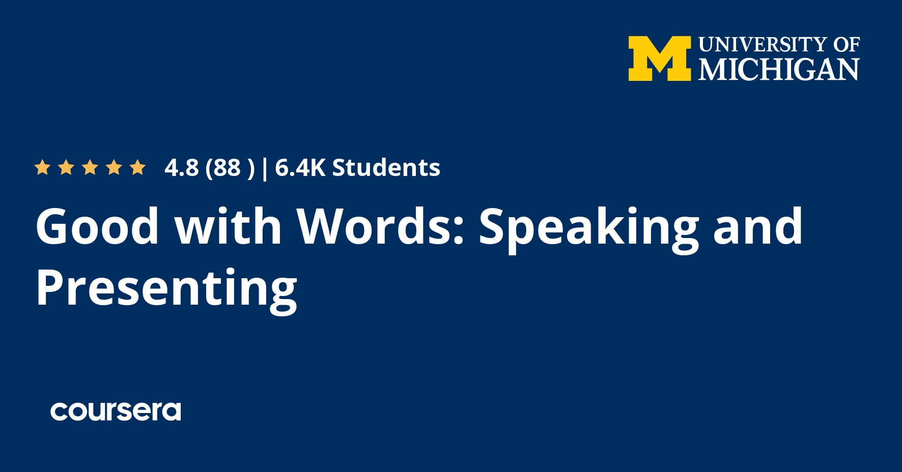 Suppose you were good with words. Suppose when you decided to speak, the message you delivered—and the way you delivered it—successfully connected with your intended audience. What would that mean for your career prospects? What would that mean for your comfort level in social situations? And perhaps most importantly, what would that mean for your satisfaction with the personal relationships you value the most? This specialization is designed to help you find out. Based on an award-winning course and workshop series at the University of Michigan that has been taken by students training to enter a wide range of fields—law, business, medicine, social work, public policy, design, engineering, and many more—it removes the guesswork from figuring out how to communicate clearly and compellingly.