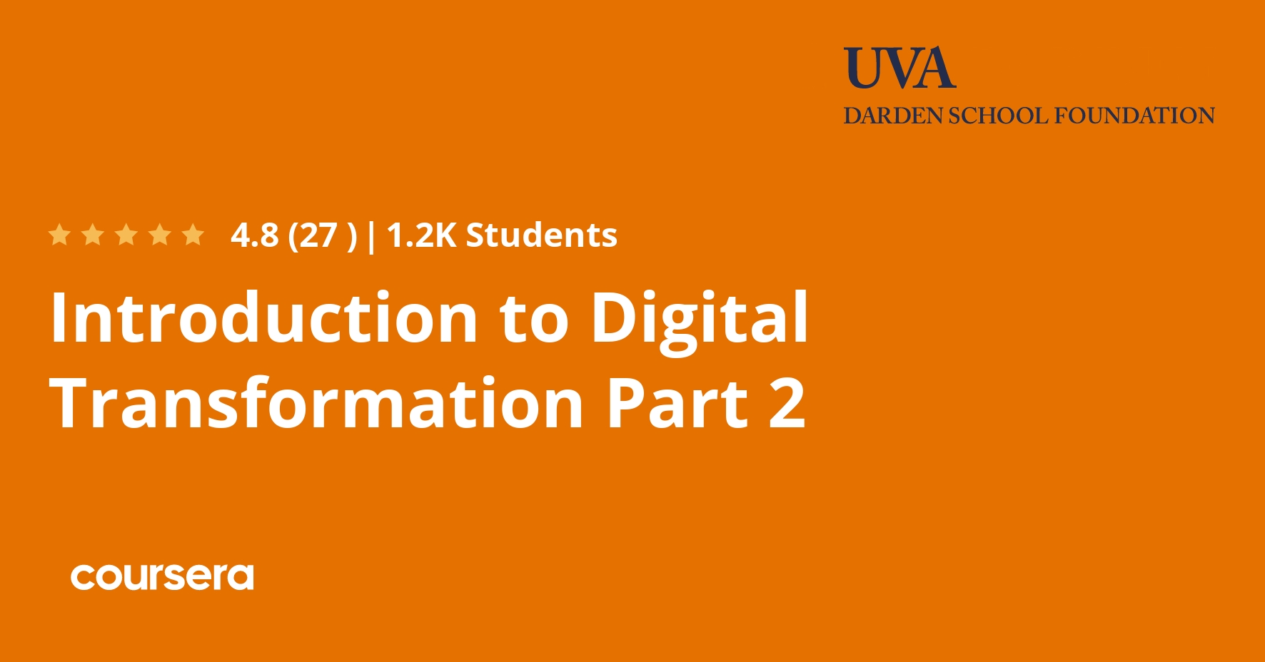 This course was designed to further your understanding of digital transformation so you can leverage digitization to improve business function performance. You’ll learn how to build out your core digital infrastructure, with a focus on cloud computing, data integrity and digital platforms. You’ll explore how digitization is transforming various business functions and organization units and learn how to