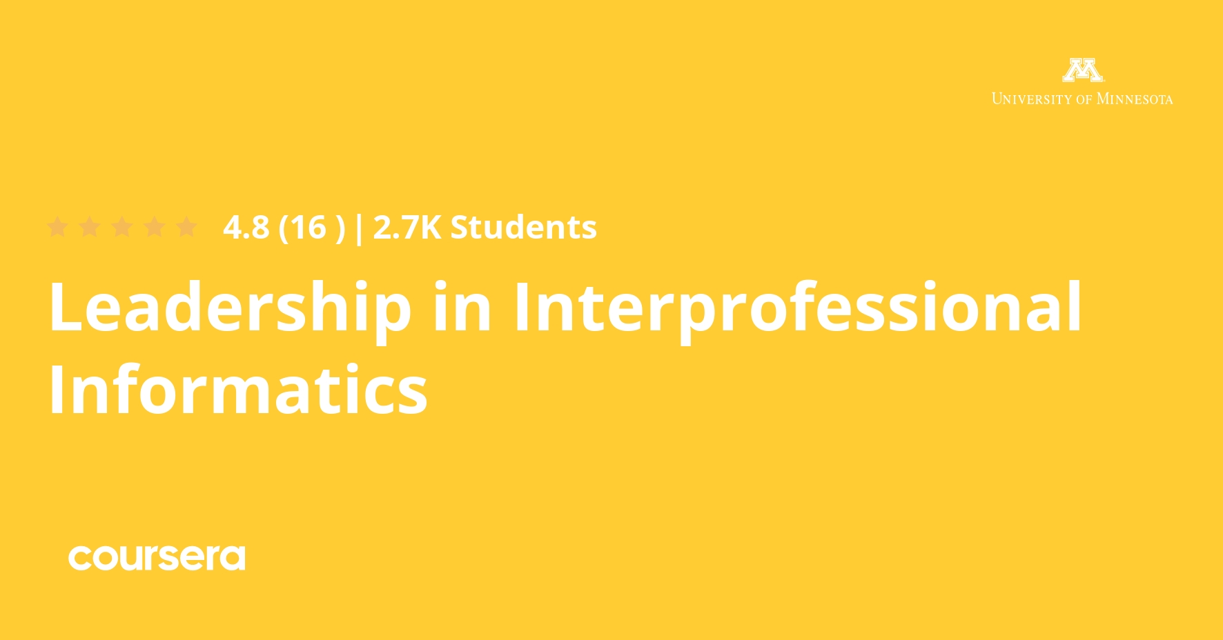 In this course, students in the health and information technology professions will examine models for interprofessional collaboration and teamwork, practice communication techniques to promote effective interaction, and envision futures literacy in interprofessional informatics scenarios. We will hear from nurses and other informaticians who are leading and working interprofessionally, and glean insights from their diverse perspectives. When we think about the requisite variety of leadership skills that are essential in nursing informatics, we may deduce that leadership in interprofessional informatics will demand at least that diversity or more. We’ll expand our nursing informatics leadership vision to include interprofessional applications of the Competing Values Framework and the Minnesota Nursing Informatics Leadership Inventory.