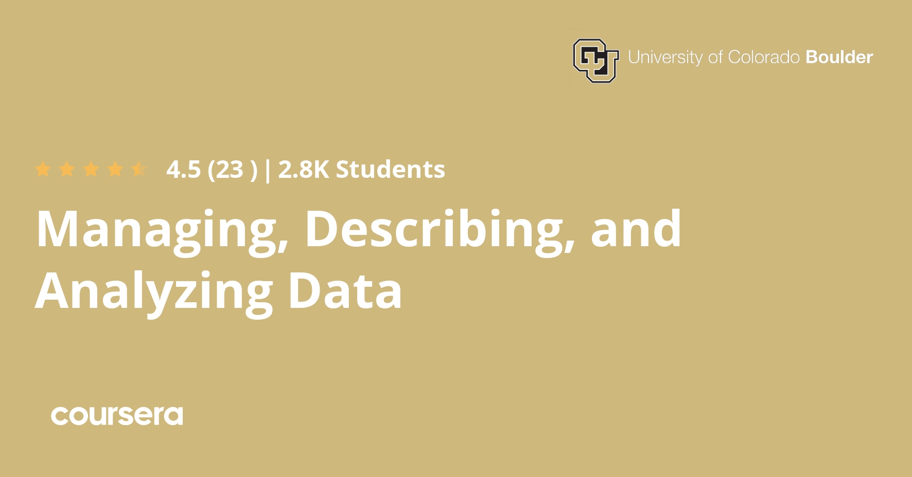 This course can be taken for academic credit as part of CU Boulder’s Master of Science in Data Science (MS-DS) degree offered on the Coursera platform. The MS-DS is an interdisciplinary degree that brings together faculty from CU Boulder’s departments of Applied Mathematics, Computer Science, Information Science, and others. With performance-based admissions and no application process, the MS-DS is ideal for individuals with a broad range of undergraduate education and/or professional experience in computer science, information science, mathematics, and statistics. Learn more about the MS-DS program at https://www.coursera.org/degrees/master-of-science-data-science-boulder.