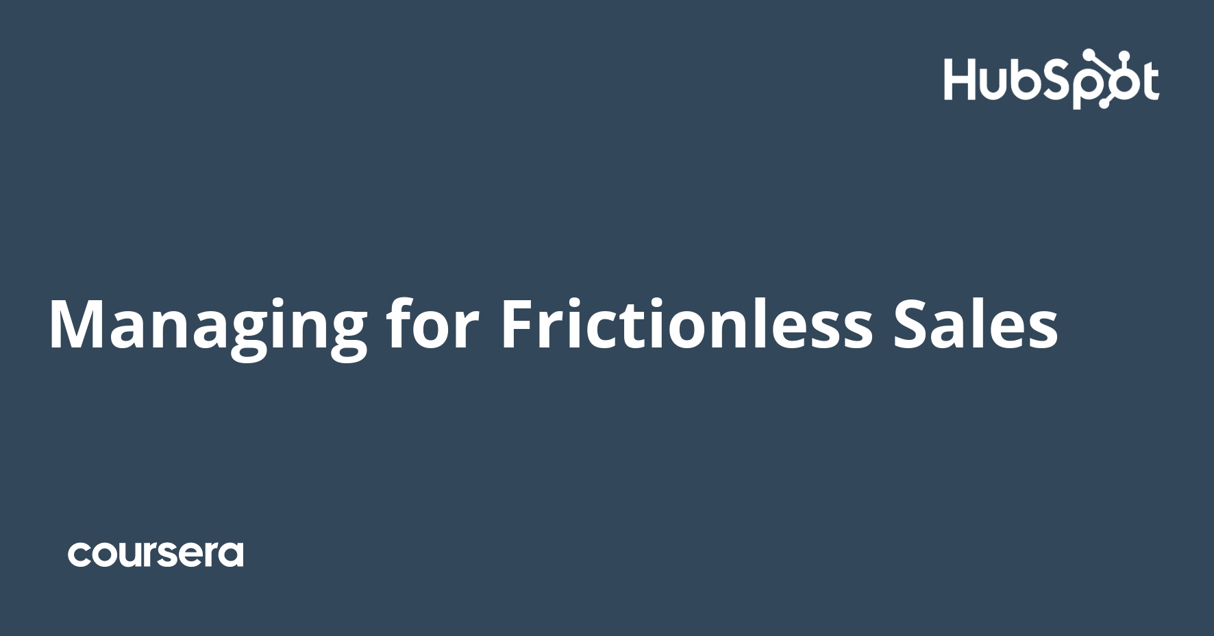 This course introduces you to the Frictionless Sales Framework and how it can enable your sales team to be more effective and efficient. You’ll learn how to measure your team’s effectiveness with a Rep Efficiency Audit. You will discover how to create a sales process that aligns with your targeted buyer’s journey as well as your business goals. You’ll also learn how to create an effective sales training program, hiring strategy and onboarding process to help you staff your team with the best sales professionals and train them to be successful.