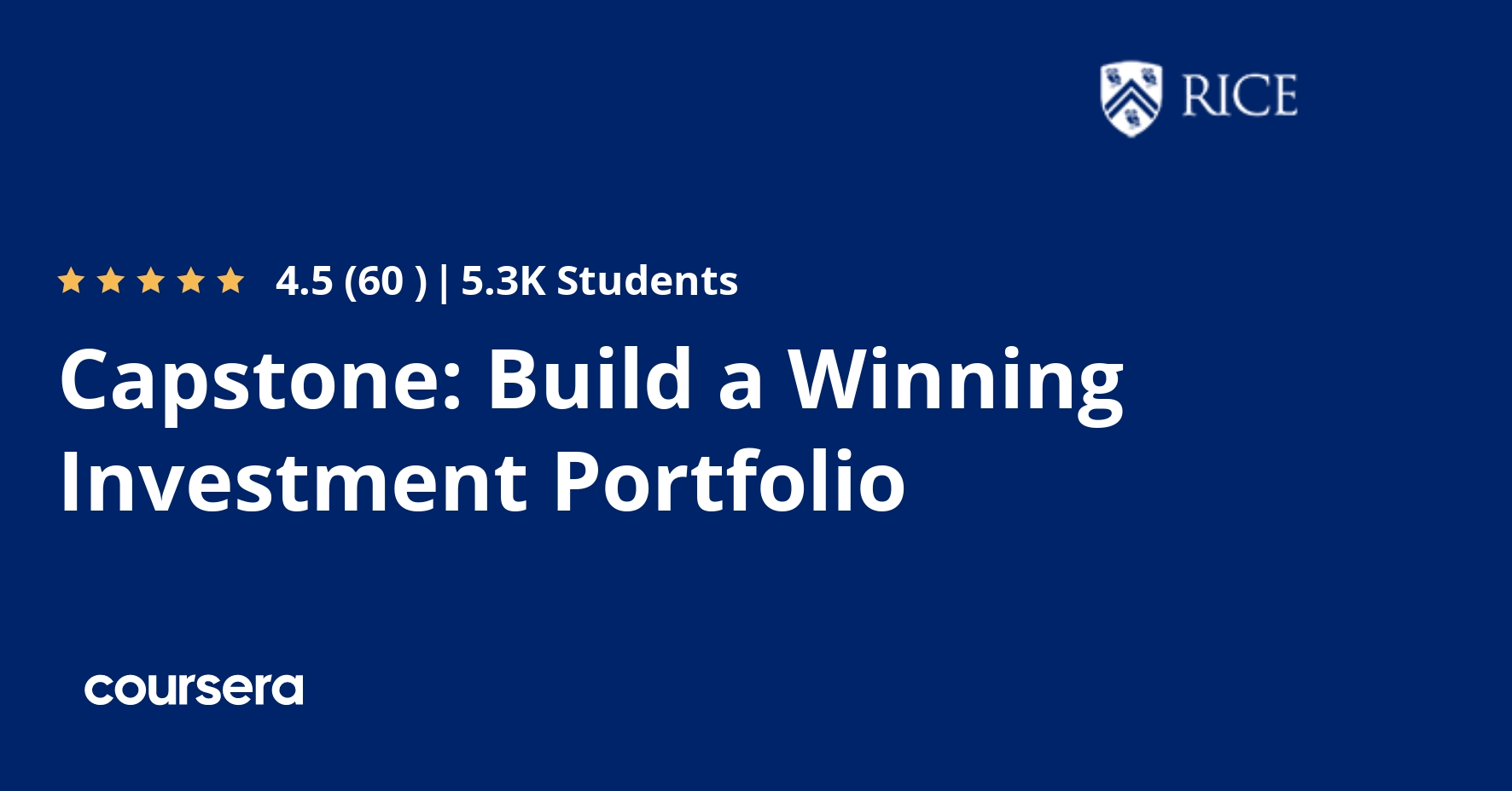 • Developing and managing your own simulated investment portfolio, resulting in a peer-graded report covering portfolio strategy, analysis, and performance